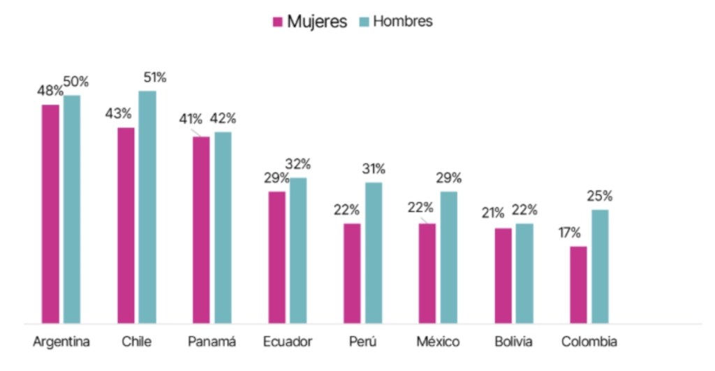 Para la edición 2025 del estudio «Brechas de Género en la Inclusión Financiera», se encuestó a 13,455 personas mayores de 18 años de ocho países de la región (Argentina, Bolivia, Chile, Colombia, Ecuador, México, Panamá y Perú) y se evaluó la inclusión financiera a través de tres dimensiones: acceso, uso y calidad percibida. Para conocer más sobre el estudio completo: https://bancodeideascredicorp.com/