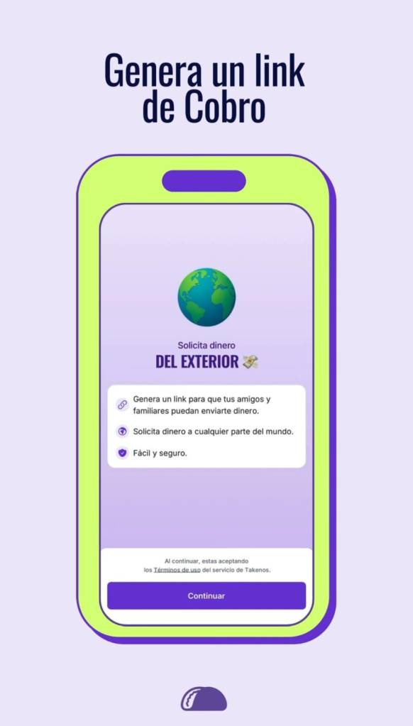 Con unos pasos muy simples, los clientes de Takenos pueden crear un enlace de solicitud de pago y compartirlo con familiares, proveedores o contactos comerciales en el exterior, a través de canales digitales como WhatsApp, correo electrónico u otras plataformas.